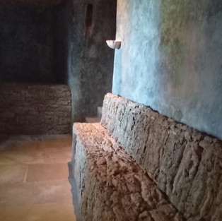 Subimos depois ao 3º ponto mais alto de toda a Serra de Sintra, com 491m de altura, onde se encontra um vértice geodésico e o Tholos do Monge. O Tholos do Monge é uma antiga sepultura coletiva, construída no período Calcolítico. Dentro da ruína de forma circular e formada por pedras, foram encontrados vários despojos que confirmam a importância desta construção.